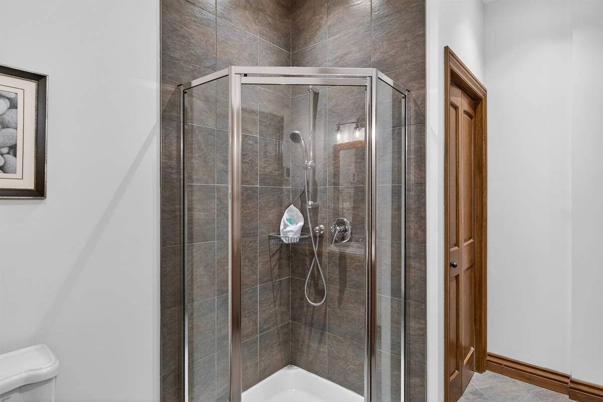 ✹ Bathroom 2 (upper level): Single vanity, walk-in shower